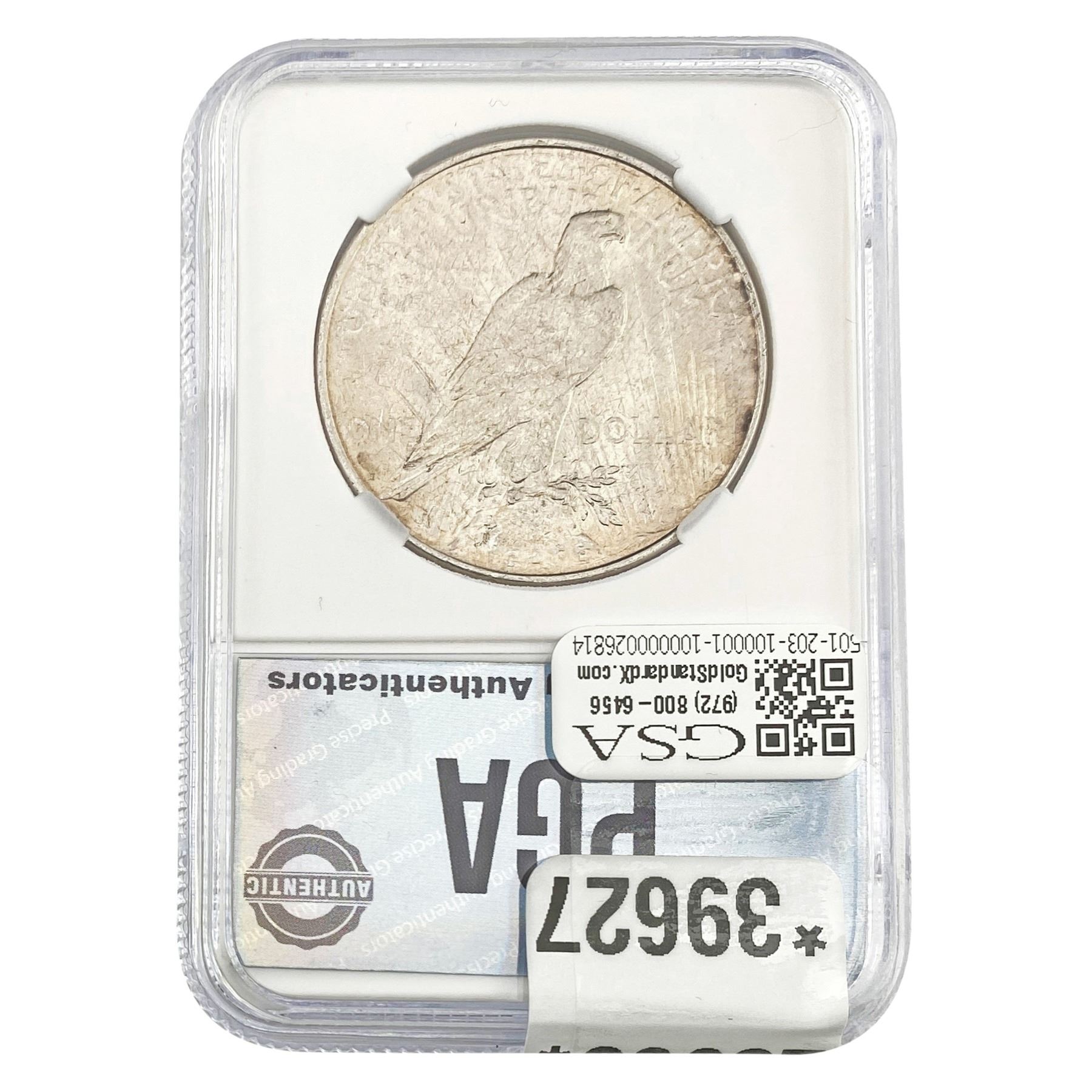 COINS AND CURRENCY LISTED IN GSA’S CATALOG AS GRADED AND ENCAPSULATED BY PCGS, NGC, ANACS, ICG, PCGS CURRENCY, PMG, PCGS BANKNOTE GRADING, CMC OR ANY OTHER THIRD-PARTY GRADING SERVICE ARE LIKEWISE SOLD “AS-IS” EXCEPT AS EXPRESSLY SET FORTH HEREIN. ALL THIRD-PARTY GRADING SERVICE GUARANTEES, INCLUDING AUTHENTICITY, ARE THE SOLE RESPONSIBILITY OF THE THIRD-PARTY GRADING SERVICE AND NOT WARRANTIES OR GUARANTEES OF GSA. BIDDERS SHOULD CONTACT THESE THIRD-PARTY GRADING SERVICES DIRECTLY WITH RESPECT TO ANY CLAIMS OR QUESTIONS THEY MAY HAVE CONCERNING THEIR GUARANTEES AND WARRANTIES. BIDDERS ACKNOWLEDGE AND AGREE THAT AUCTIONEER IS NOT BOUND BY OR LIABLE FOR ANY OPINION OR CERTIFICATION BY ANY THIRD-PARTY GRADING SERVICE. REMOVAL OF A PRODUCT FROM ITS PROTECTIVE CASING OR HOLDER OR ALTERATION OF ANY COIN HOLDER WAIVES ALL RIGHTS CONCERNING THE PRODUCT CONTAINED THEREIN.