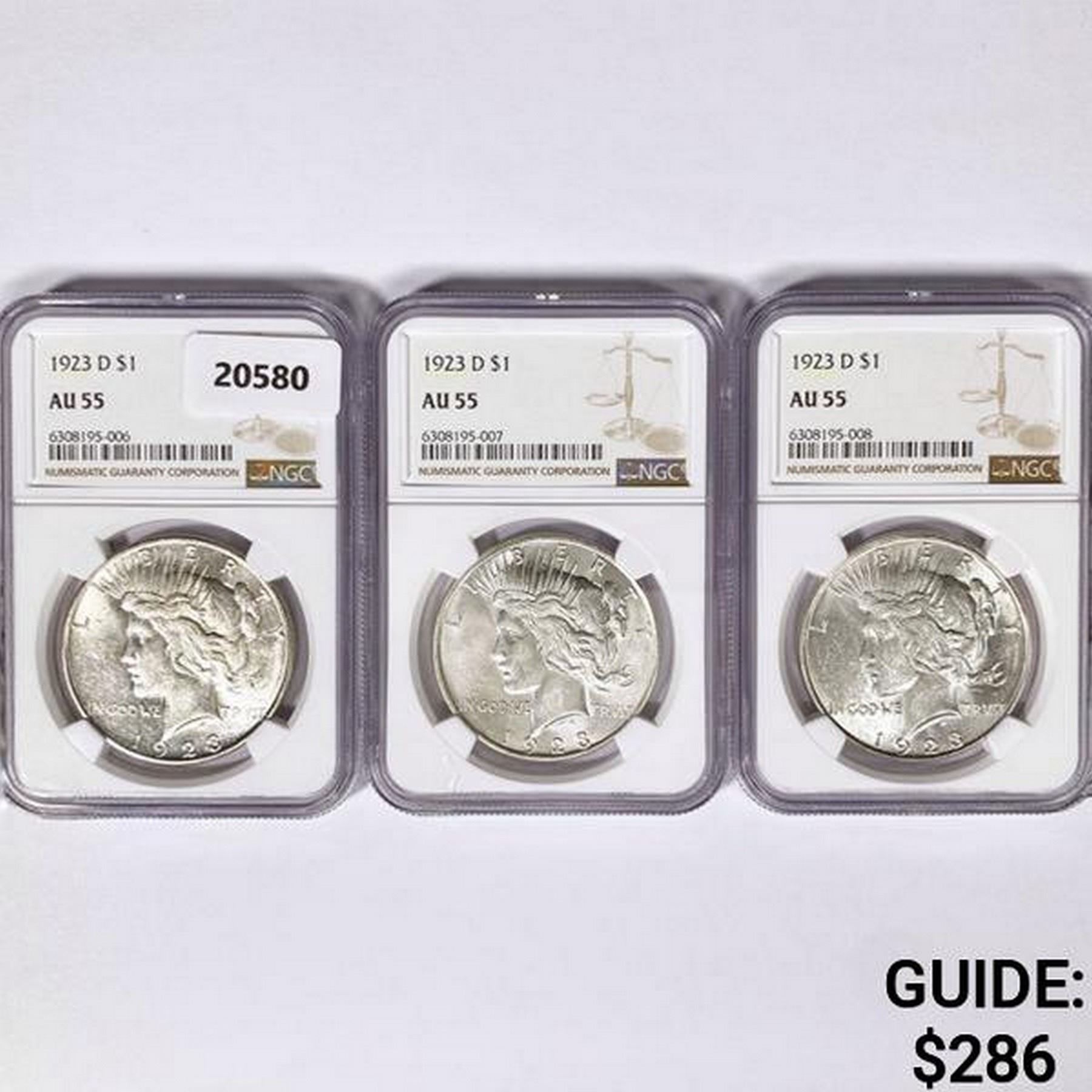 1923-D Set (3) Silver Peace Dollar NGC AU55