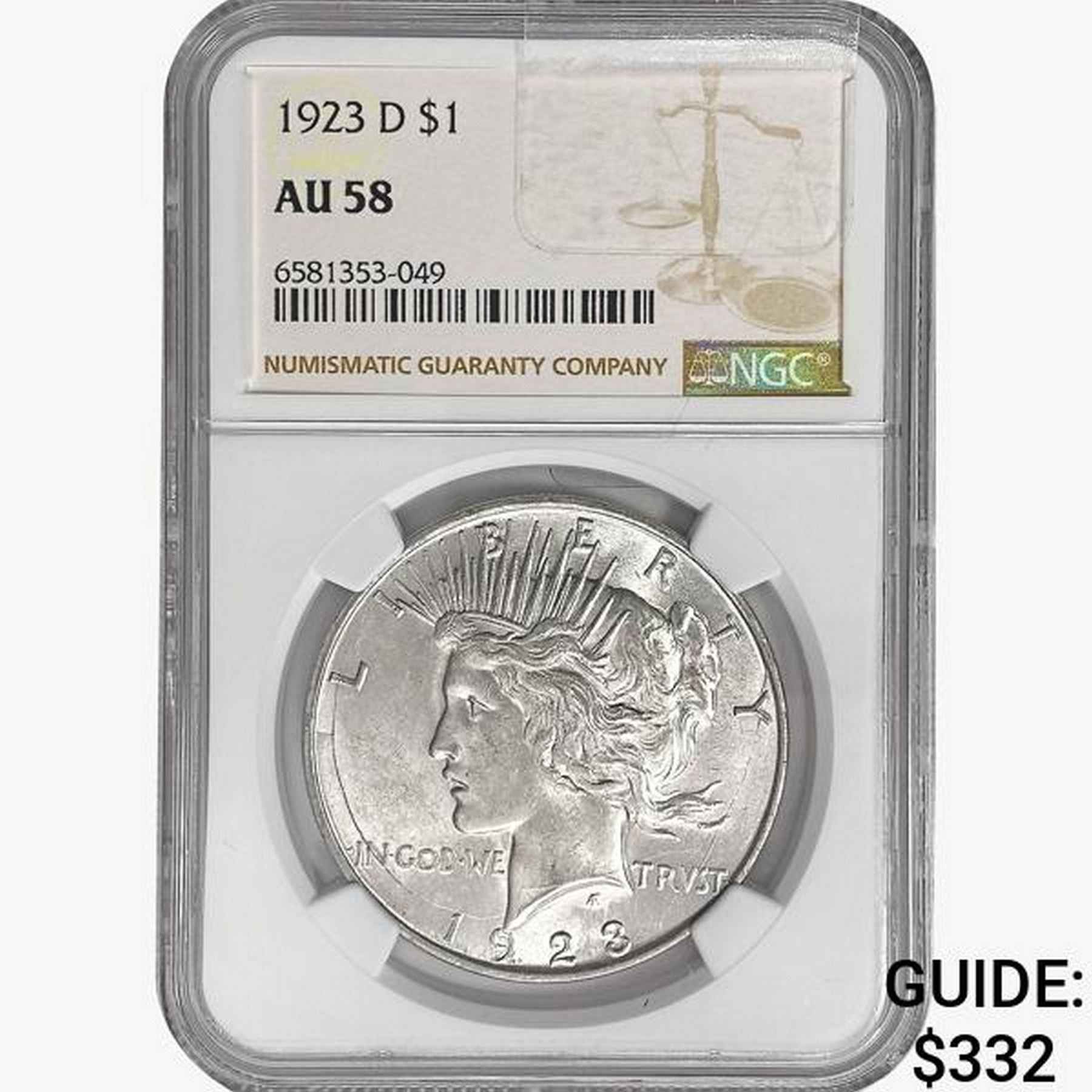 1923-D Silver Peace Dollar NGC AU58