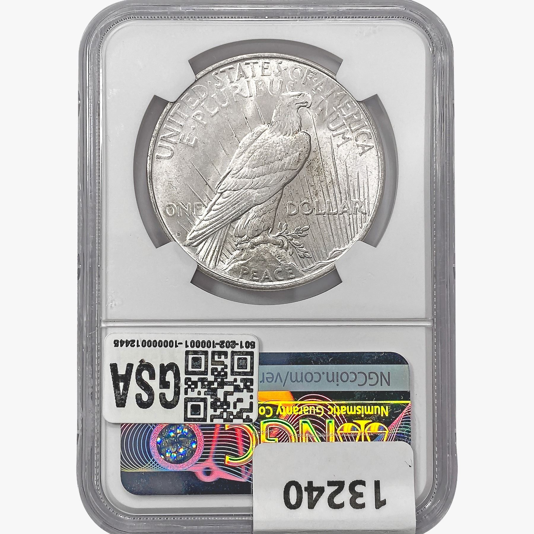 e. Coins sold referencing a third-party grading service are sold “AS IS” without any express or implied warranty, except for a guarantee by GSA that they are genuine. Removal or alteration of the holder, voids all of Bidder’s claims concerning that Product. Certain warranties may be available from the grading services and Bidders are referred to them for further details: Numismatic Guaranty Corporation (NGC), PO Box 4776, Sarasota, FL 34230, www.ngccoin.com/services/writtenguarantee.asp; Professional Coin Grading Services (PCGS), PO Box 9458, Newport Beach, CA 92658, www.pcgs.com/guarantee.html; ANACS, 6555 S. Kenton St., Ste. 303, Englewood, CO 80111; and Independent Coin Grading Co. (ICG), 7901 East Bellview, Ave., Suite 50, Englewood, CO 80111.