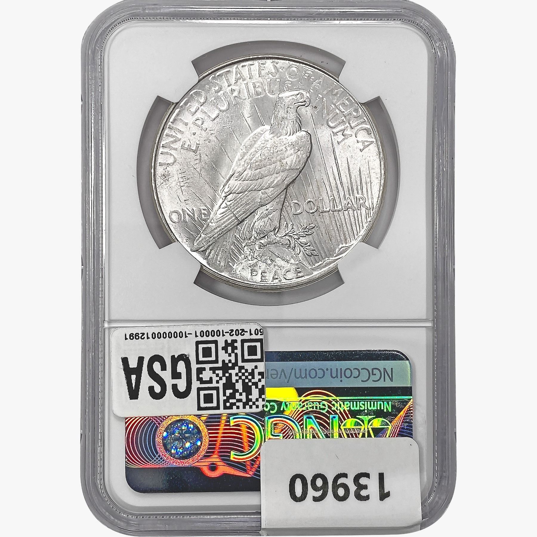 COINS AND CURRENCY LISTED IN GSA’S CATALOG AS GRADED AND ENCAPSULATED BY PCGS, NGC, ANACS, ICG, PCGS CURRENCY, PMG, PCGS BANKNOTE GRADING, CMC OR ANY OTHER THIRD-PARTY GRADING SERVICE ARE LIKEWISE SOLD “AS-IS” EXCEPT AS EXPRESSLY SET FORTH HEREIN. ALL THIRD-PARTY GRADING SERVICE GUARANTEES, INCLUDING AUTHENTICITY, ARE THE SOLE RESPONSIBILITY OF THE THIRD-PARTY GRADING SERVICE AND NOT WARRANTIES OR GUARANTEES OF GSA. BIDDERS SHOULD CONTACT THESE THIRD-PARTY GRADING SERVICES DIRECTLY WITH RESPECT TO ANY CLAIMS OR QUESTIONS THEY MAY HAVE CONCERNING THEIR GUARANTEES AND WARRANTIES. BIDDERS ACKNOWLEDGE AND AGREE THAT AUCTIONEER IS NOT BOUND BY OR LIABLE FOR ANY OPINION OR CERTIFICATION BY ANY THIRD-PARTY GRADING SERVICE. REMOVAL OF A PRODUCT FROM ITS PROTECTIVE CASING OR HOLDER OR ALTERATION OF ANY COIN HOLDER WAIVES ALL RIGHTS CONCERNING THE PRODUCT CONTAINED THEREIN.
