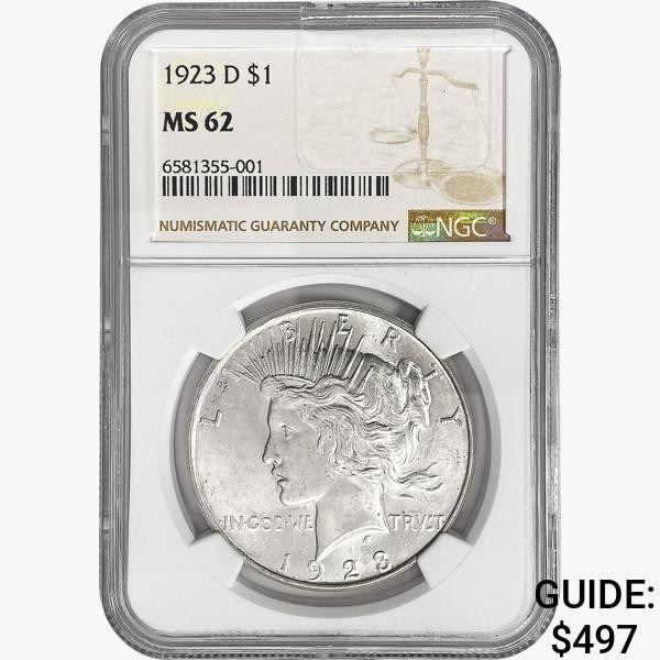 1923-D Silver Peace Dollar NGC MS62