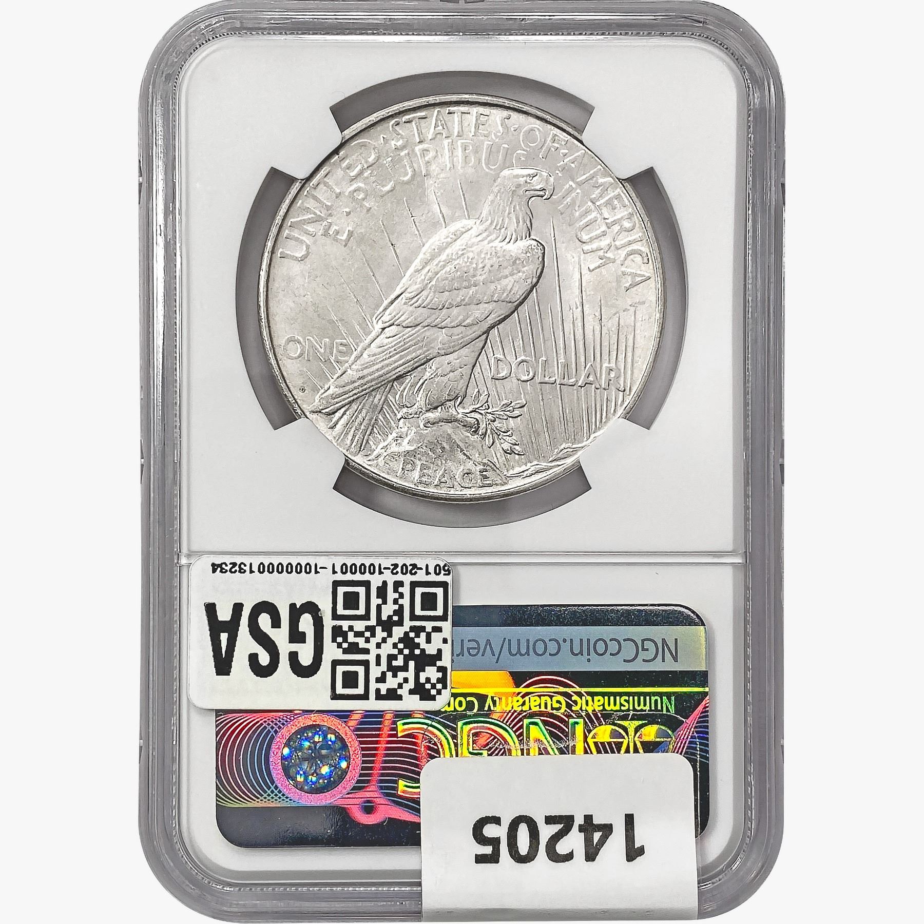 COINS AND CURRENCY LISTED IN GSA’S CATALOG AS GRADED AND ENCAPSULATED BY PCGS, NGC, ANACS, ICG, PCGS CURRENCY, PMG, PCGS BANKNOTE GRADING, CMC OR ANY OTHER THIRD-PARTY GRADING SERVICE ARE LIKEWISE SOLD “AS-IS” EXCEPT AS EXPRESSLY SET FORTH HEREIN. ALL THIRD-PARTY GRADING SERVICE GUARANTEES, INCLUDING AUTHENTICITY, ARE THE SOLE RESPONSIBILITY OF THE THIRD-PARTY GRADING SERVICE AND NOT WARRANTIES OR GUARANTEES OF GSA. BIDDERS SHOULD CONTACT THESE THIRD-PARTY GRADING SERVICES DIRECTLY WITH RESPECT TO ANY CLAIMS OR QUESTIONS THEY MAY HAVE CONCERNING THEIR GUARANTEES AND WARRANTIES. BIDDERS ACKNOWLEDGE AND AGREE THAT AUCTIONEER IS NOT BOUND BY OR LIABLE FOR ANY OPINION OR CERTIFICATION BY ANY THIRD-PARTY GRADING SERVICE. REMOVAL OF A PRODUCT FROM ITS PROTECTIVE CASING OR HOLDER OR ALTERATION OF ANY COIN HOLDER WAIVES ALL RIGHTS CONCERNING THE PRODUCT CONTAINED THEREIN.
