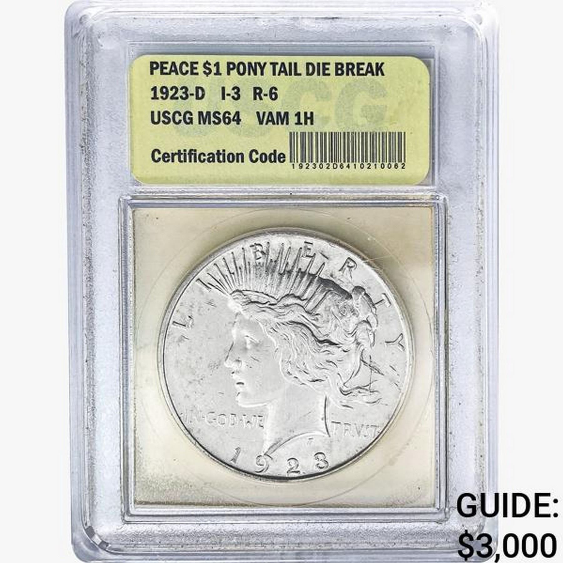 1923-D Silver Peace Dollar USCG MS64 VAM 1H