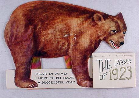 1923 DIE CUT BEAR CALENDAR - Approx. 2.75" by 3.75"