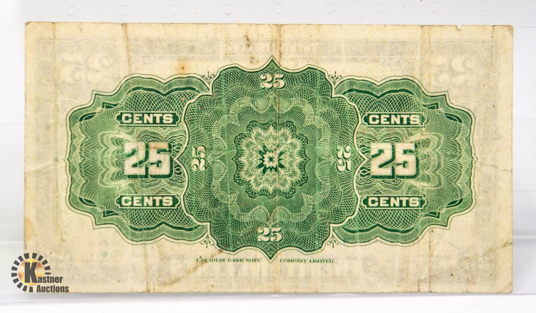 1923 DOMINION OF CANADA 25 CENT SHINPLASTER NOTE