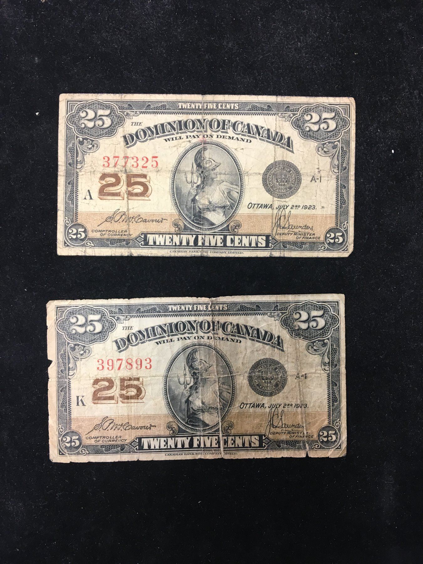 NICE LOT OF 2 NOTES .MACCAOUVERS/SAUNDERS..HEAVILY CIRCULATED.