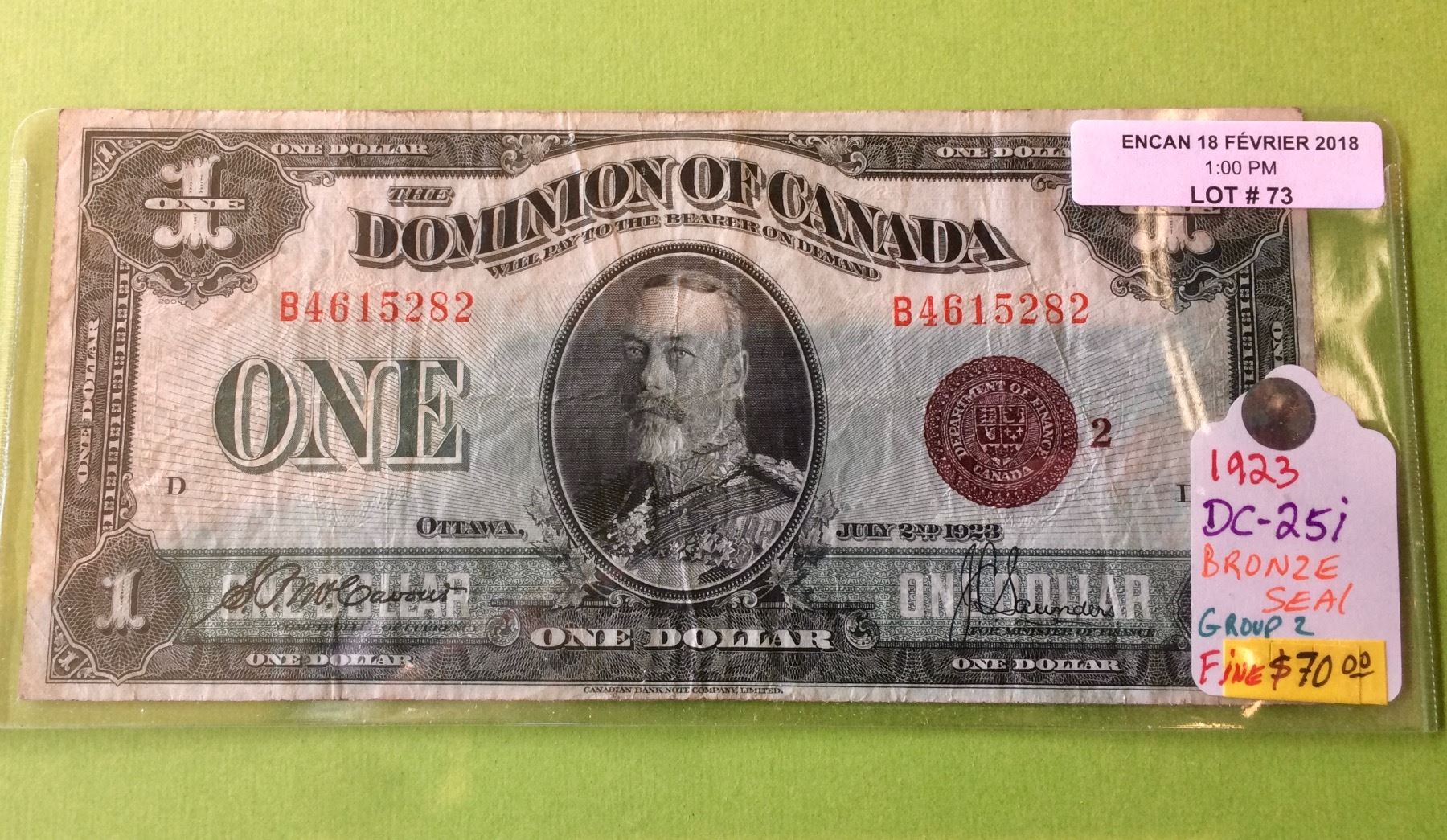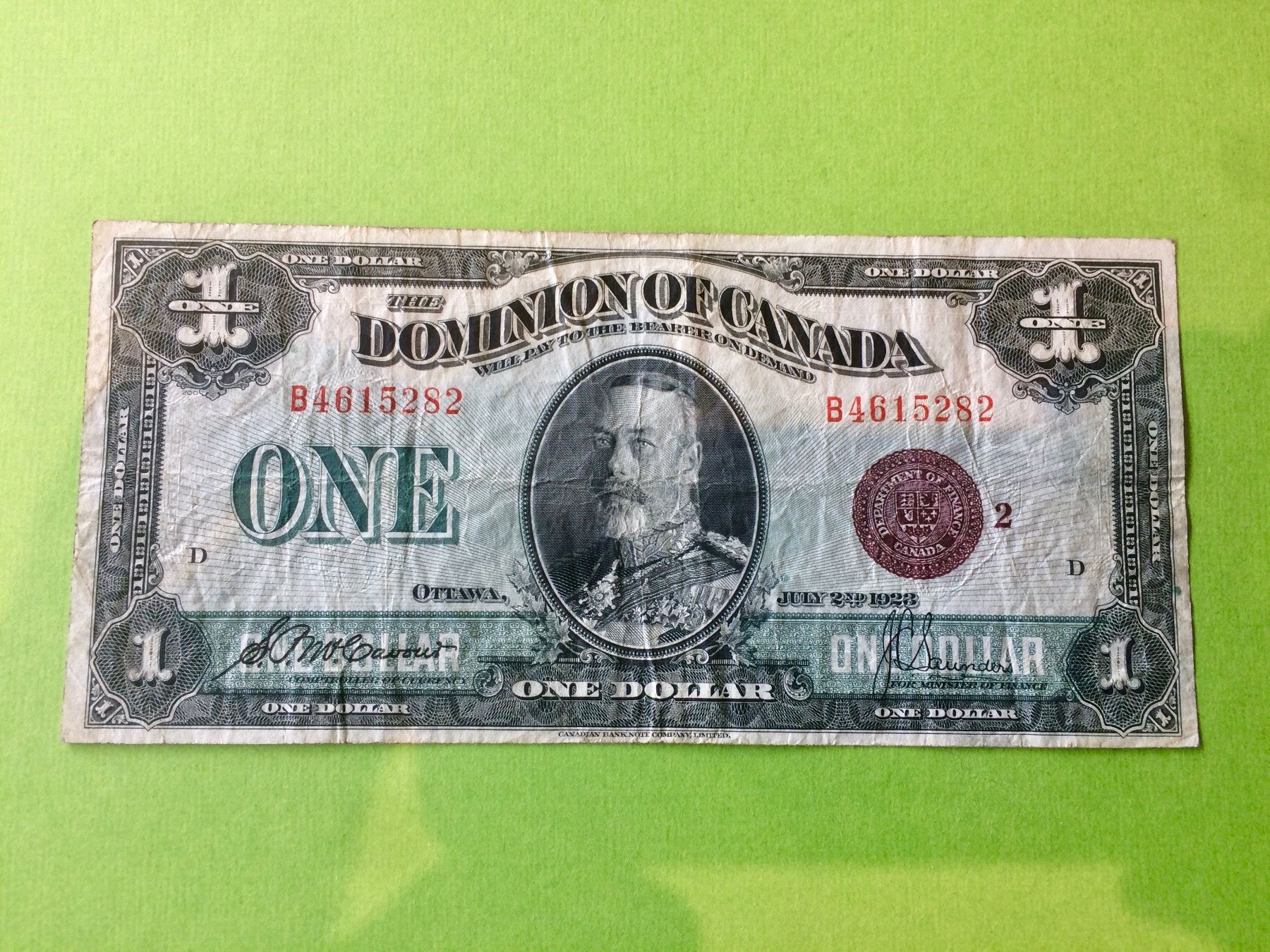 1923 Dominion of Canada 1$ Banknote DC-25i, Bronze Seal Group-2