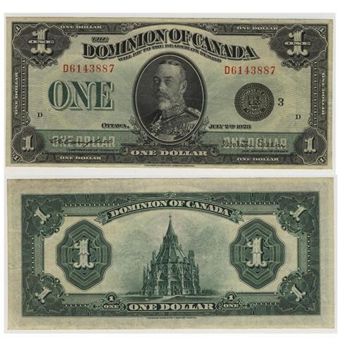 Somewhat crisp, nice even centering with vertical & horizontal centre crease. Bottom right corner crease. Campbell-Sellar variety with Black seal, Group 3. D series, #D6143887 DC-25n.