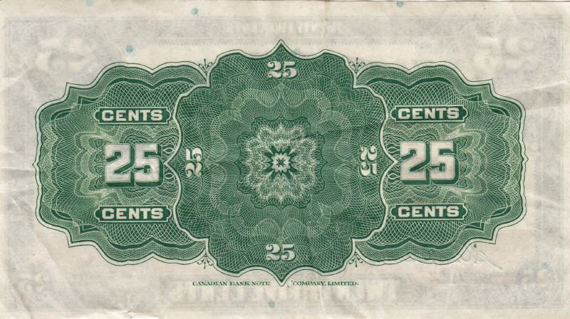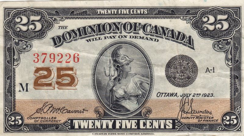 1923 Dominion of Canada 25-Cent Shinplaster Note - McCavour / Saunders - VF / EF Condition