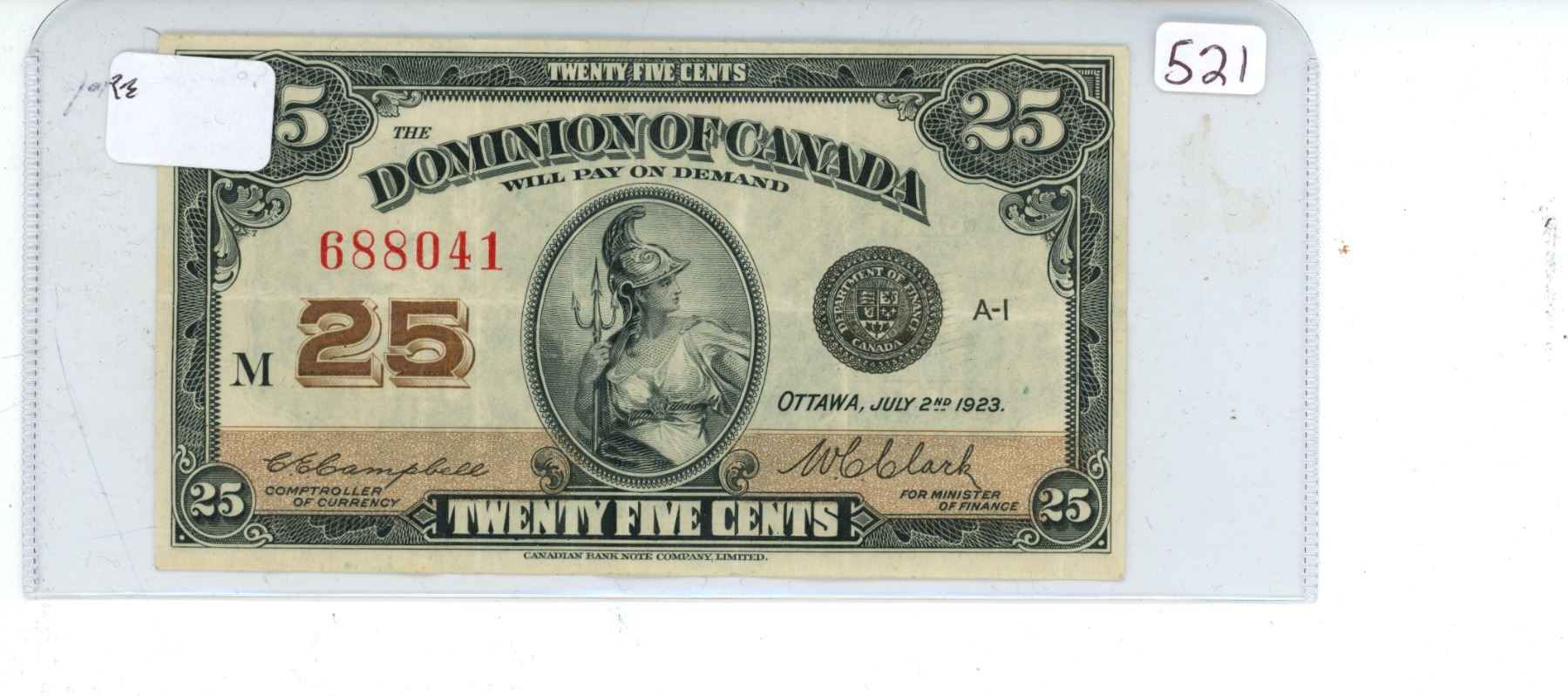 1923 Dominion of Canada 25 cent shinplaster