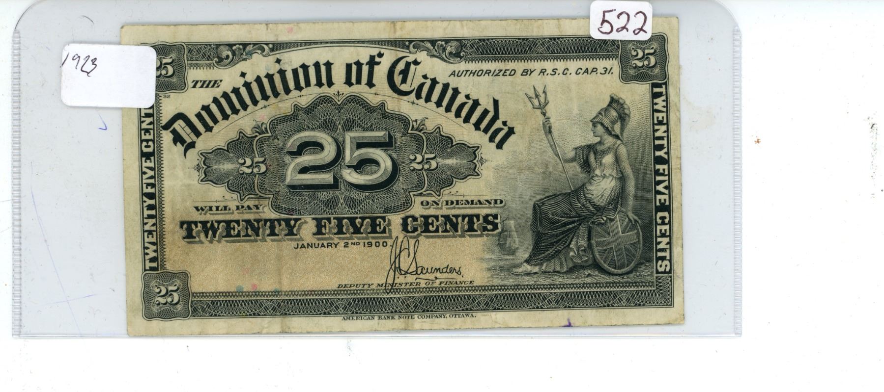1923 Dominion of Canada 25 cent shinplaster