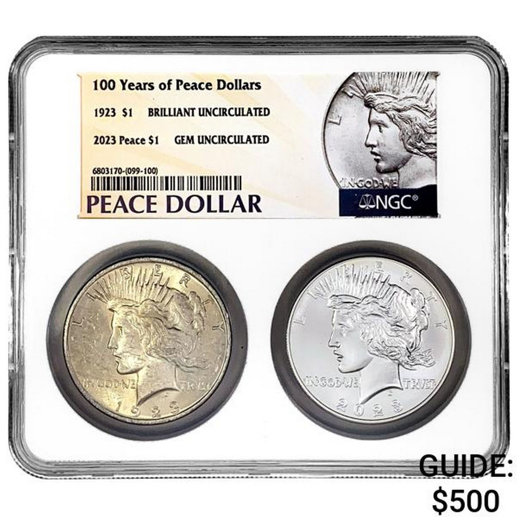 1923 Eagle & 2023 Peace BU/GEM 2 Coin Set