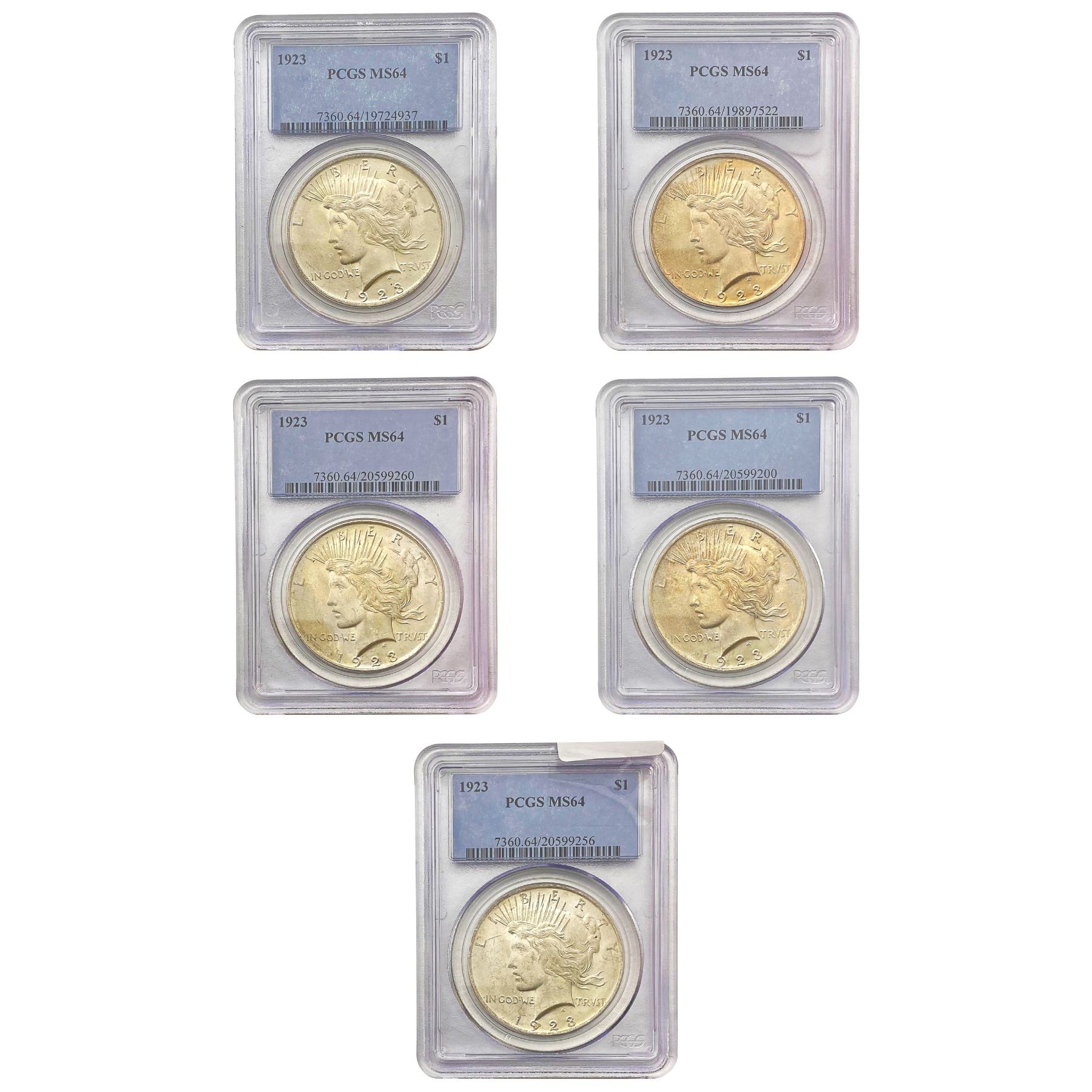 1923 FALSE PCGS MS64 BU Graded Peace Dollar Lot [6 Coins]