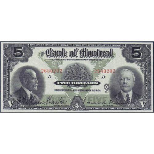1923 Five Dollars Bank of Montreal, CH 505-56-02 Serial Number 2680202 D, PMG About Uncirculated 55