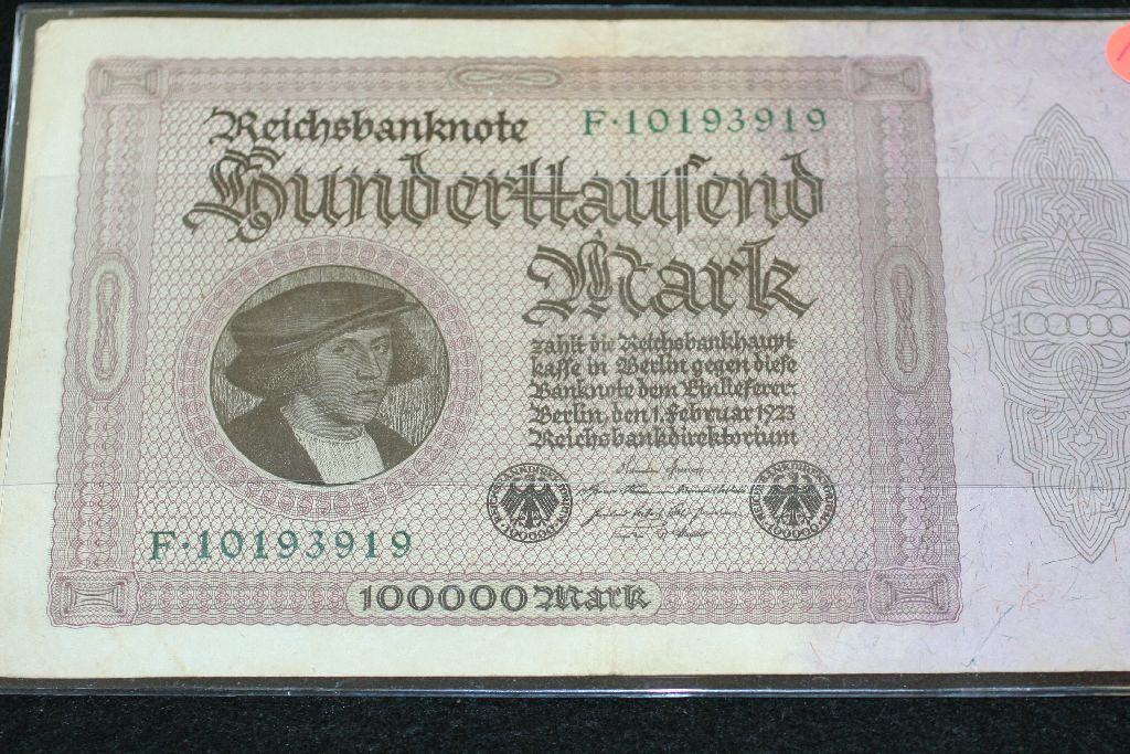 1923 German 100000 Bunderhaufend Mark Foreign Bank Note