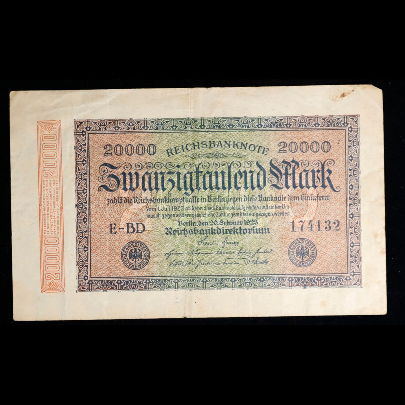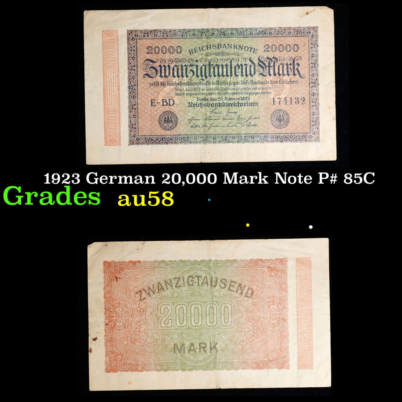 1923 German 20,000 Mark Note P# 85C Grades Choice AU/BU Slider