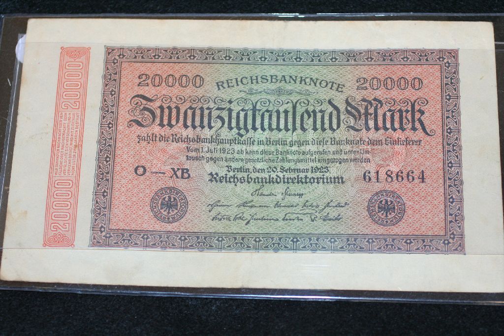 1923 German 20000 Swanzigfanlend Mark Foreign Bank Note