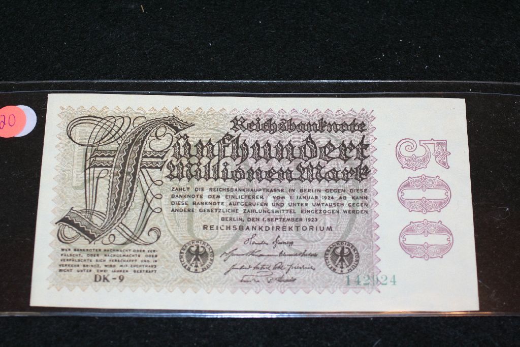 1923 German 500 Funfhundert Millionen Mark Foreign Bank Note