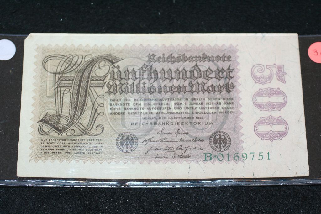 1923 German 500 Funfhundert Millionen Mark Foreign Bank Note