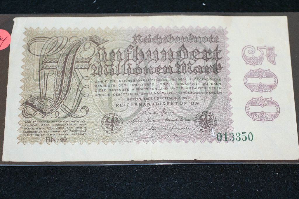 1923 German 500 Funfhundert Millionen Mark Foreign Bank Note