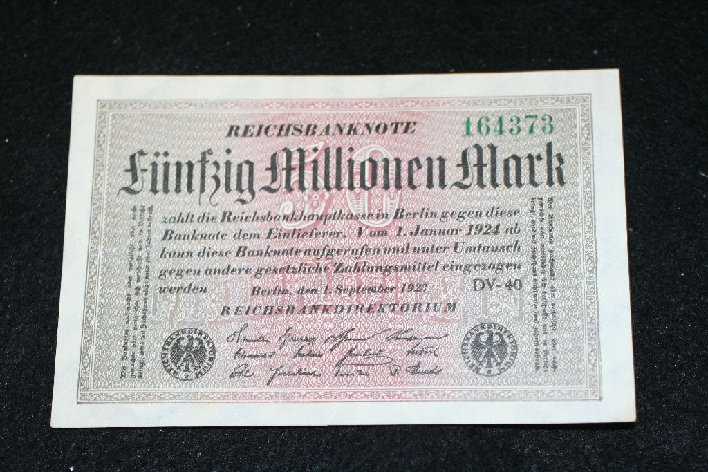 1923 German Funfzig Millionen Mark Foreign Bank Note