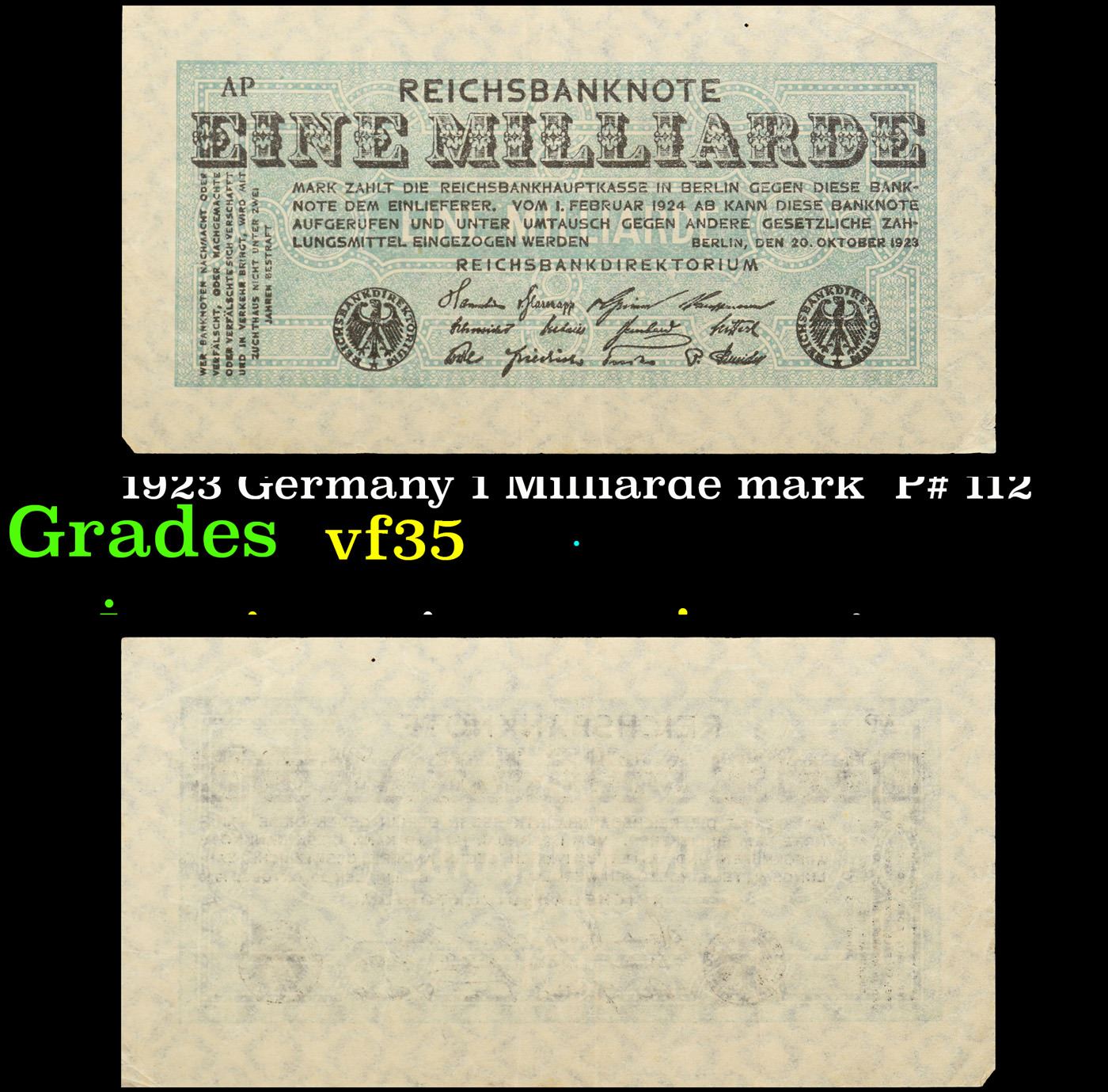 1923 Germany 1 Milliarde mark P# 112 Grades vf++.