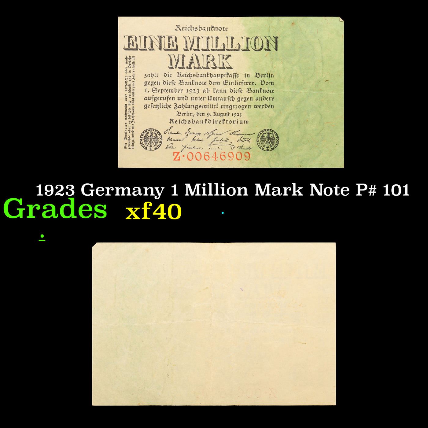 1923 Germany 1 Million Mark Note P# 101 Grades xf.