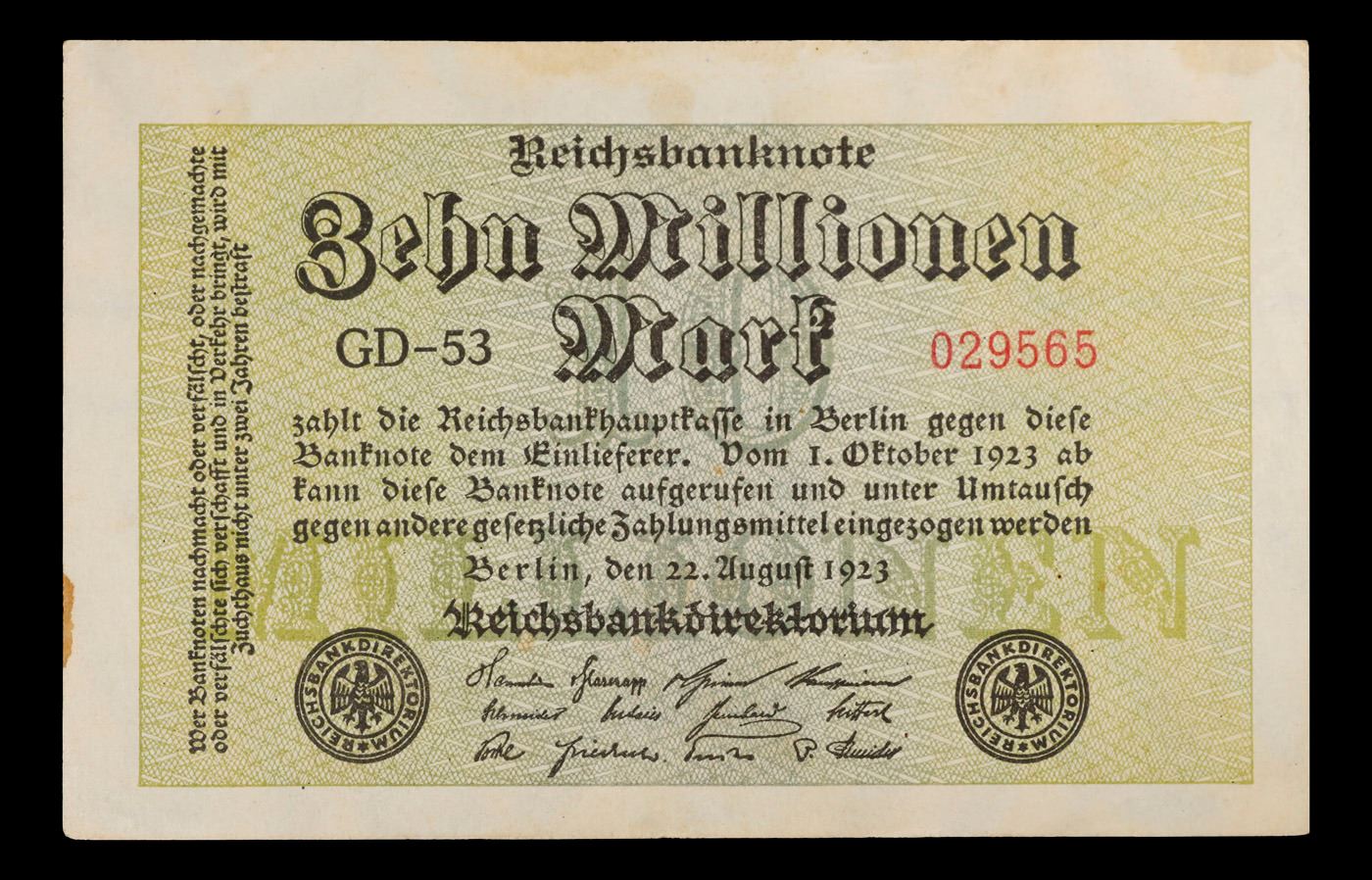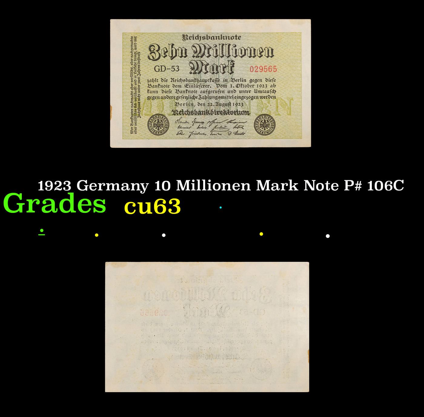 1923 Germany 10 Millionen Mark Note P# 106C Grades Select CU.