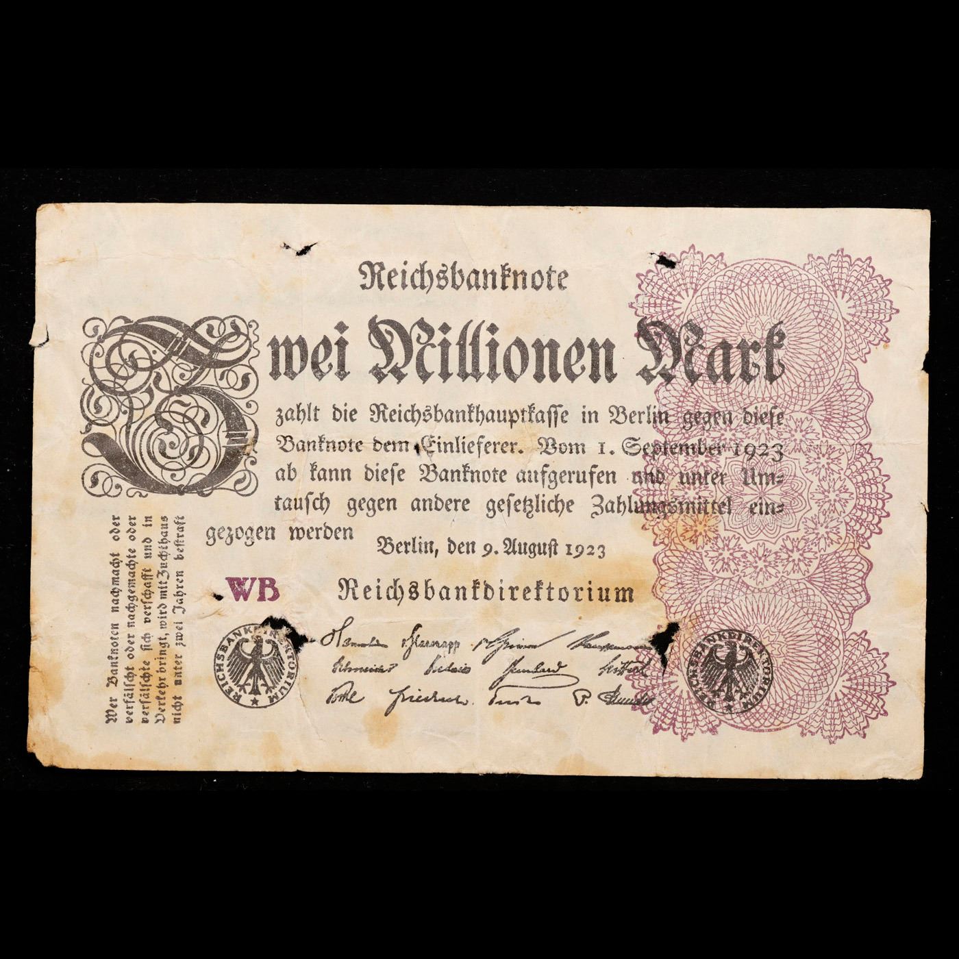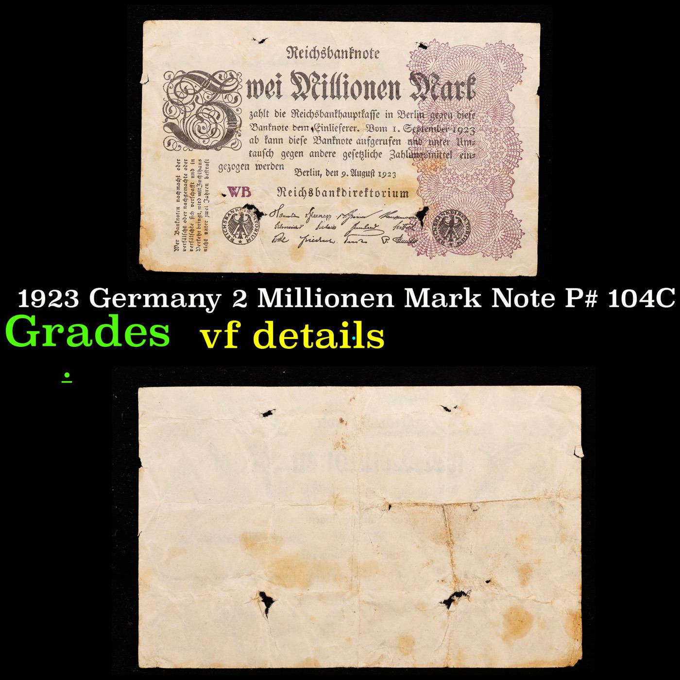 1923 Germany 2 Millionen Mark Note P# 104C Grades vf details.