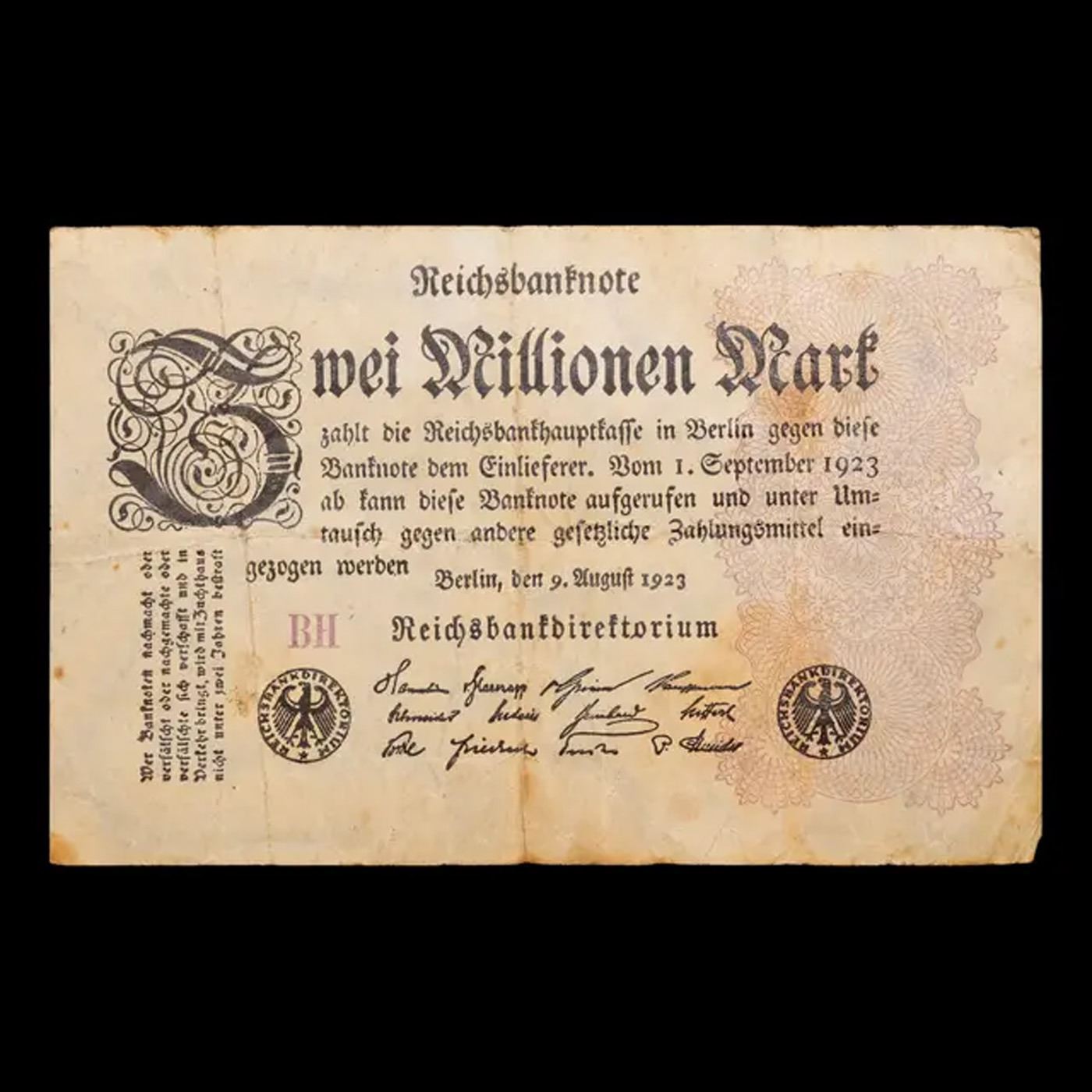 1923 Germany 2 Millionen Mark Note P# 104C Grades vf++.