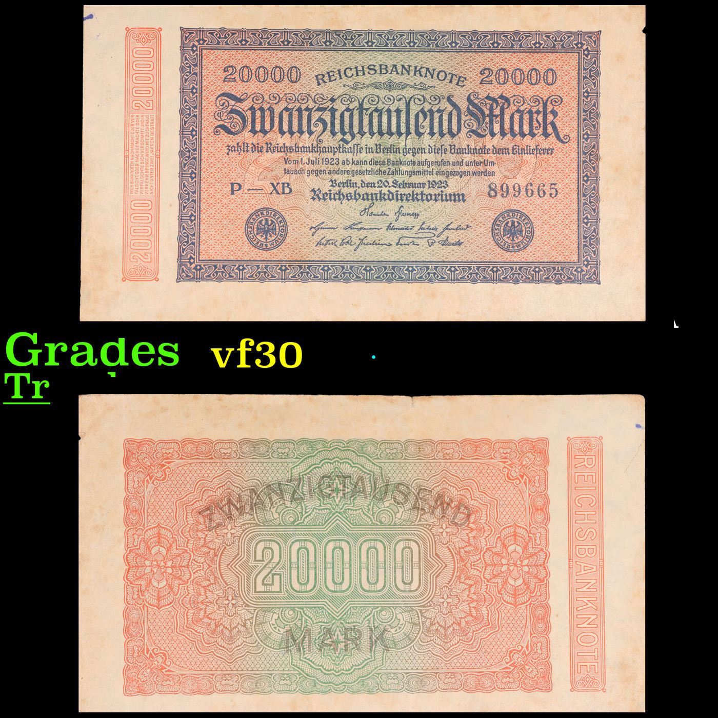 1923 Germany 20,000 Mark Note P# 85A Grades vf++.