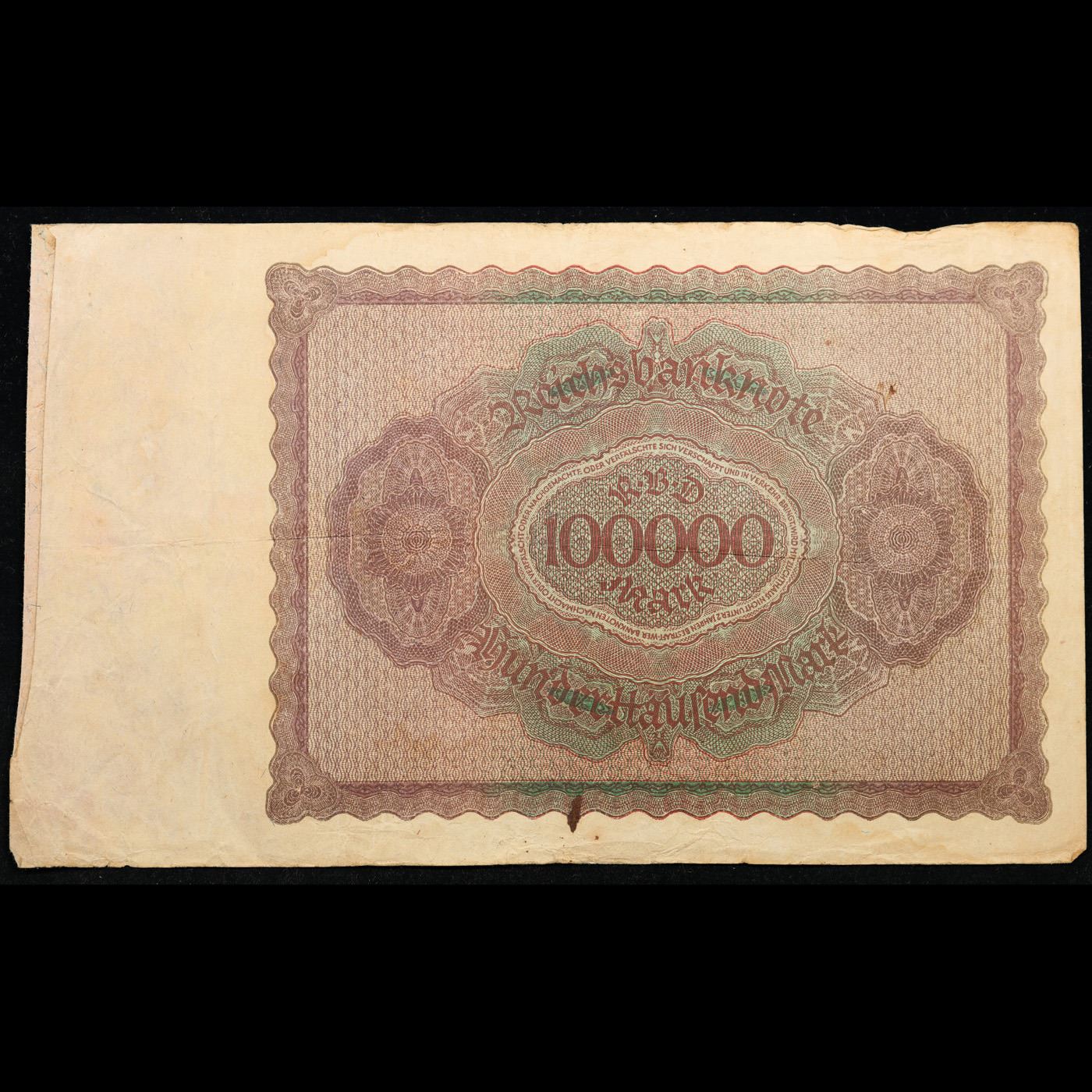 1923 Germany Weimar Republic 100,000 Marks Post-WWI Hyperinflation Banknote Grades vf++
