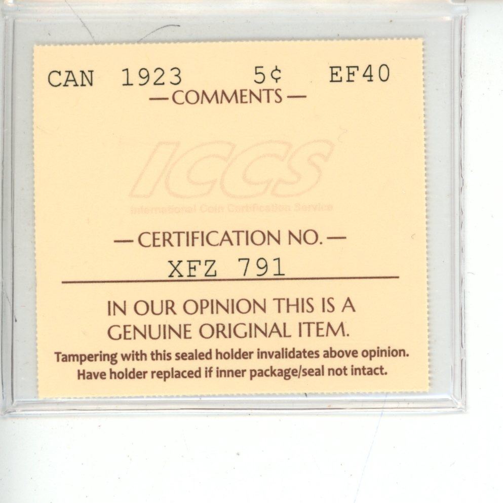 1923 ICCS Graded - Canadian Five Cent - EF40