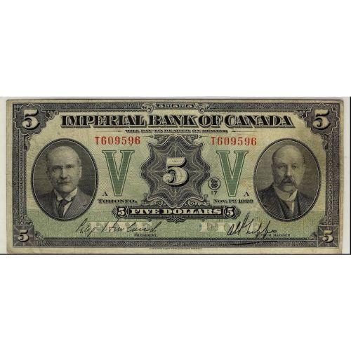 1923 Imperial Bank $5 CH-375-18-02, nice F-VF
