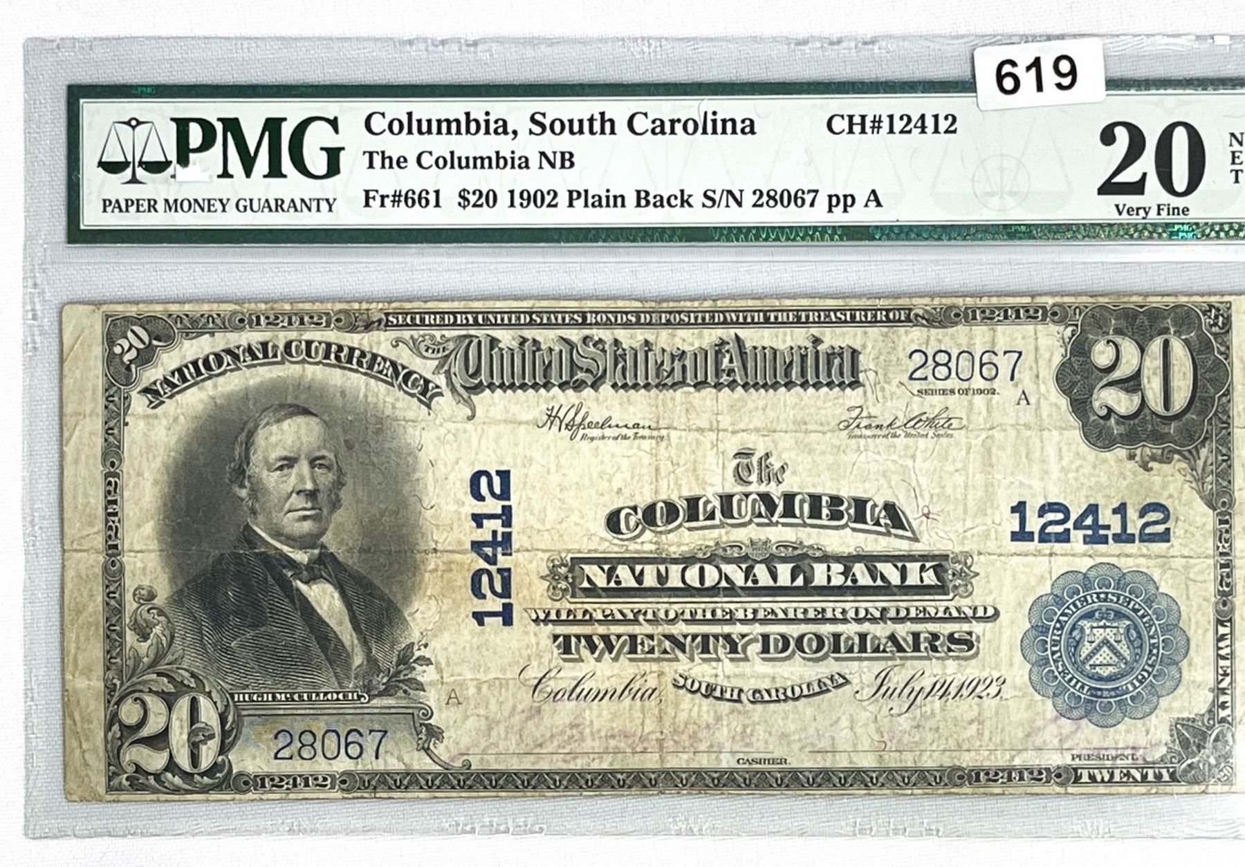 1923 LG $20 Columbia, SC National Bank Note PMG-20