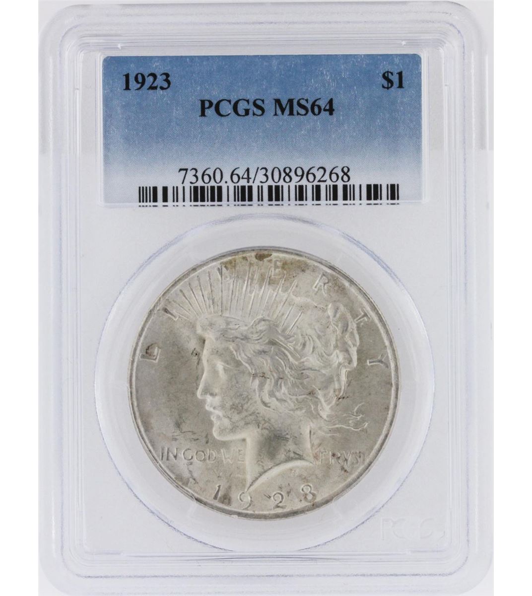 One 1923 PCGS MS64 Peace Silver Dollar. PCGS Certified.
