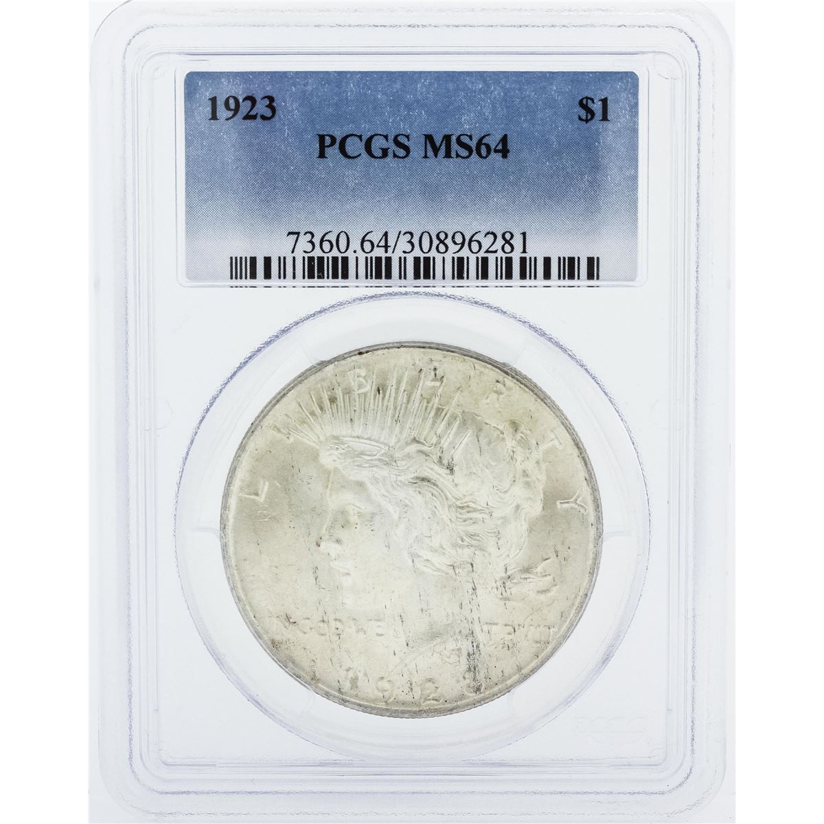 One 1923 PCGS MS64 Peace Silver Dollar. PCGS Certified.