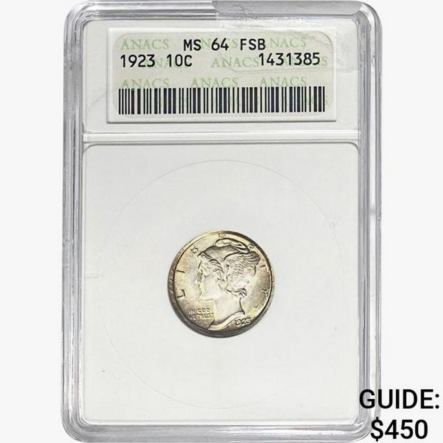 1923 Mercury Silver Dime ANACS MS64 FSB