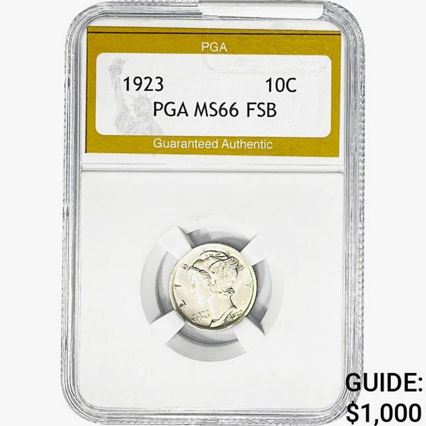 1923 Mercury Silver Dime PGA MS66 FSB