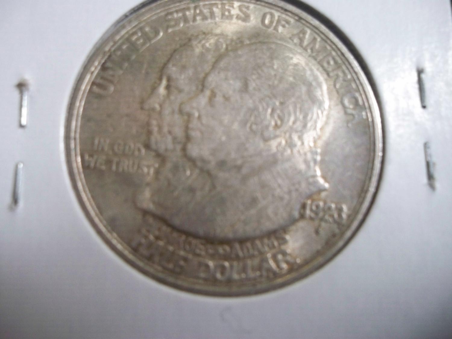 1823-1923 Monroe Doctrine Centennial Silver Half Dollar - features the heads of James Monroe and John Quincy Adams on the obverse and the Western Hemisphere portrayed by two female figures on the reverse. XF+