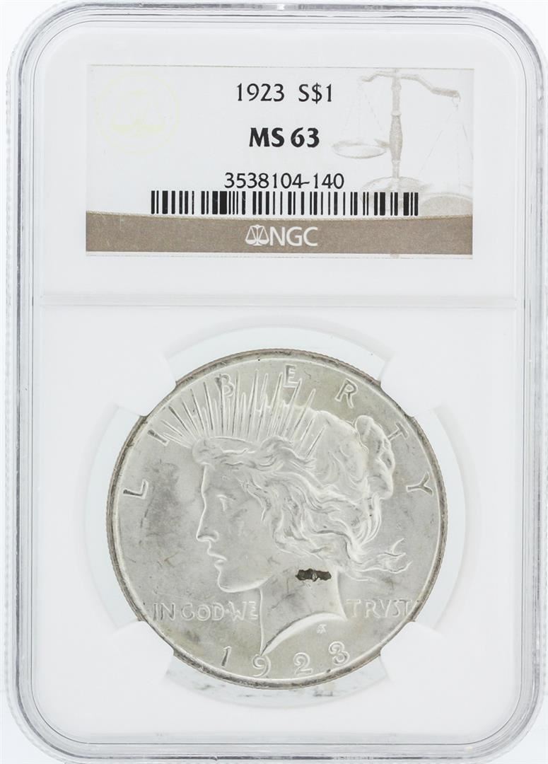 One 1923 NGC MS63 Morgan Silver Dollar. NGC Certified.