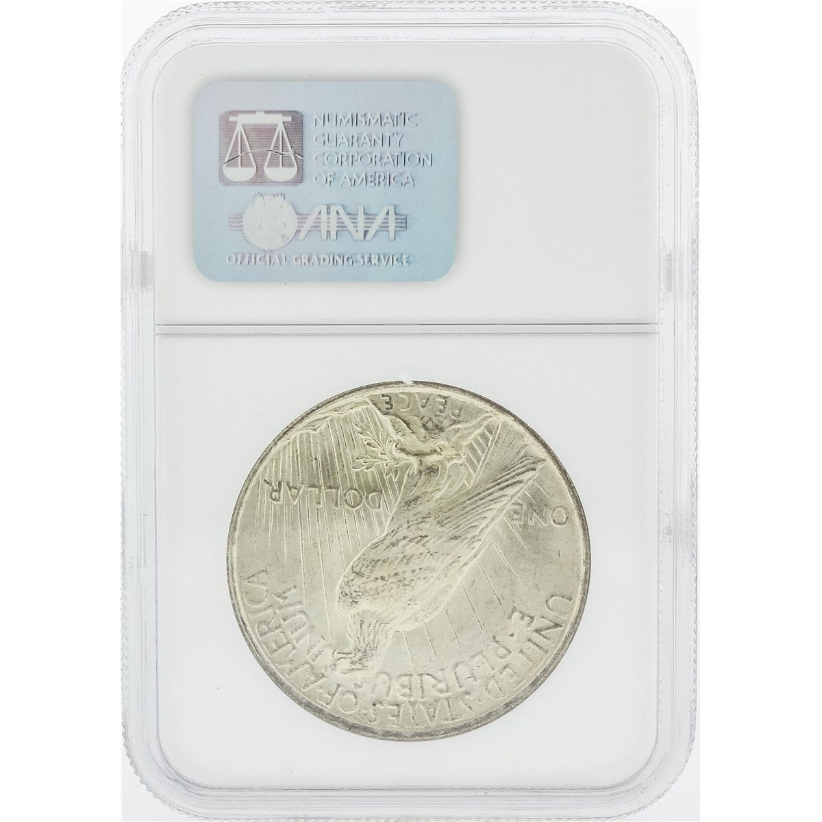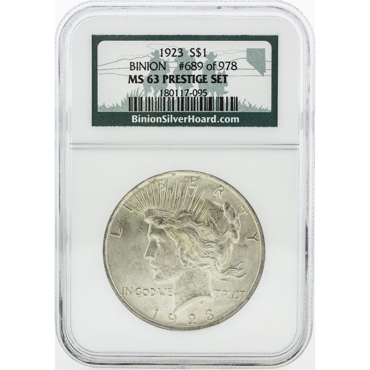 One 1923 NGC MS63 Peace Silver Dollar Coin.
