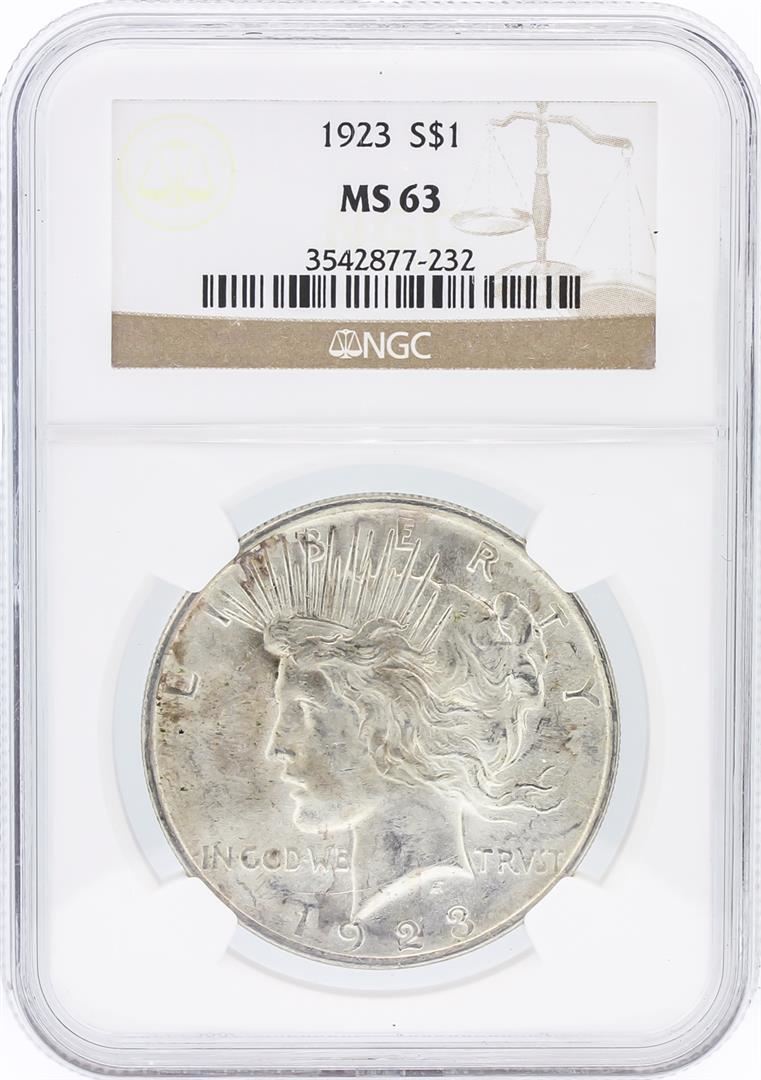 One 1923 NGC MS63 Peace Silver Dollar. NGC Certified.