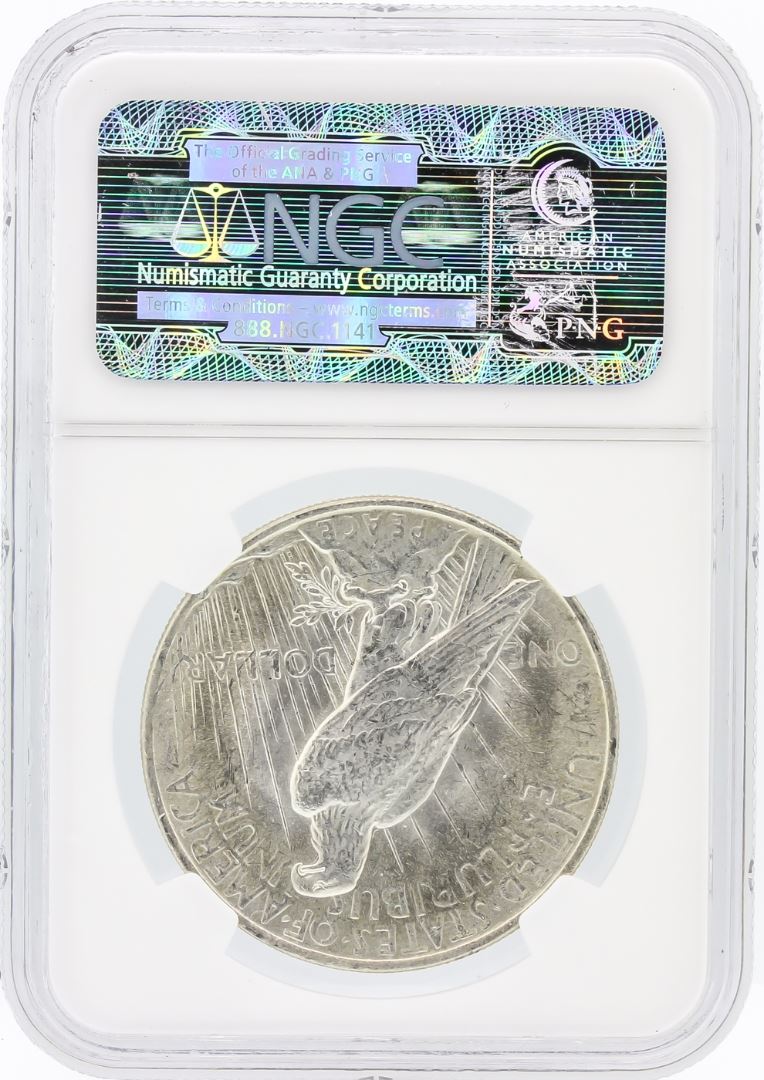 One 1923 NGC MS63 Peace Silver Dollar. NGC Certified.