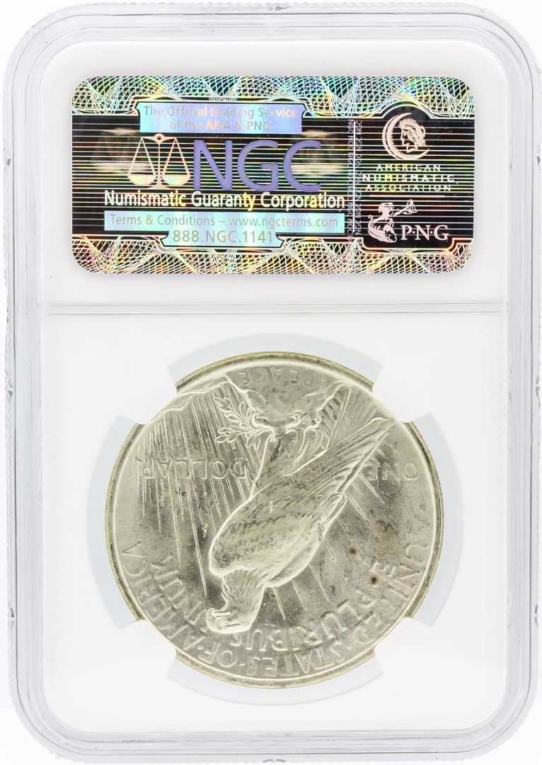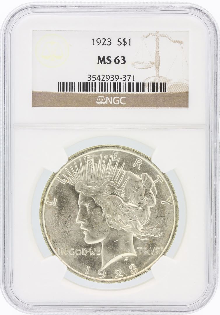 One 1923 NGC MS63 Peace Silver Dollar. NGC Certified.