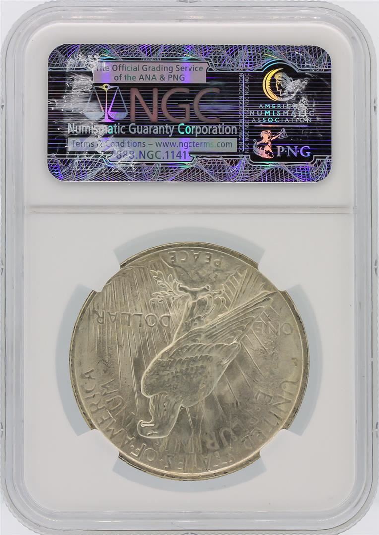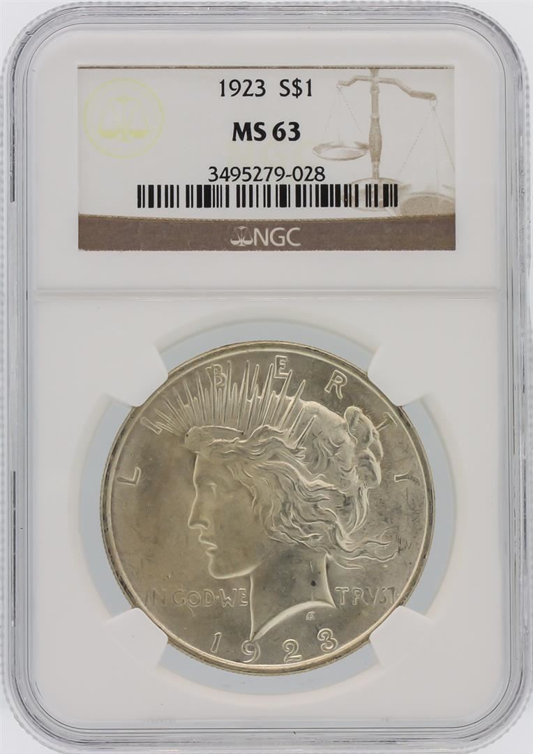 One 1923 NGC MS63 Peace Silver Dollar. NGC Certified.