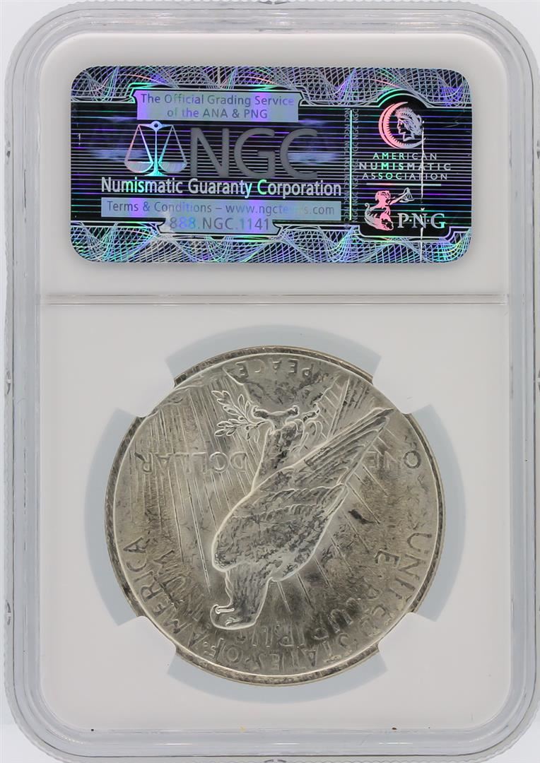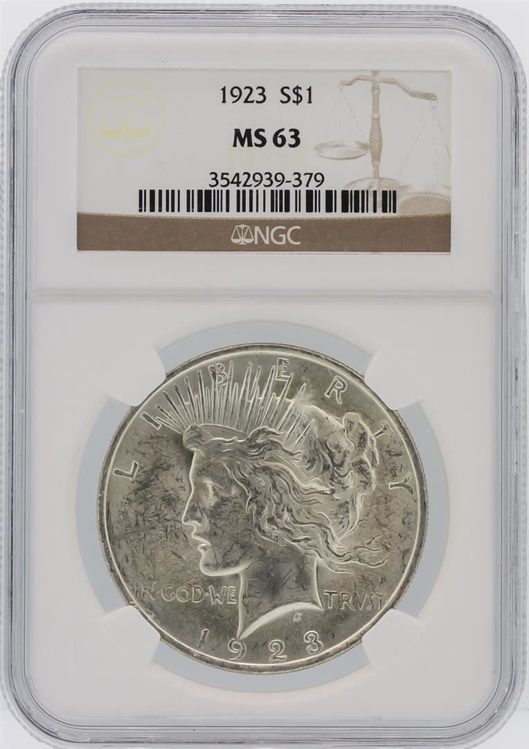 One 1923 NGC MS63 Peace Silver Dollar. NGC Certified.