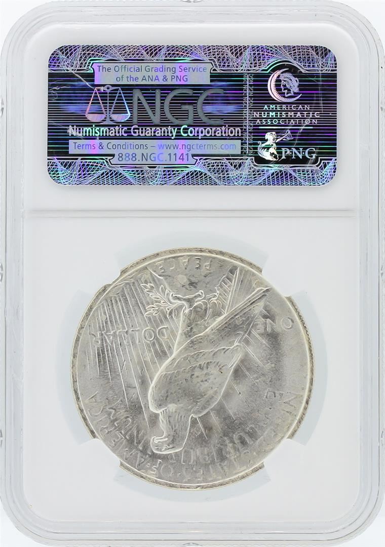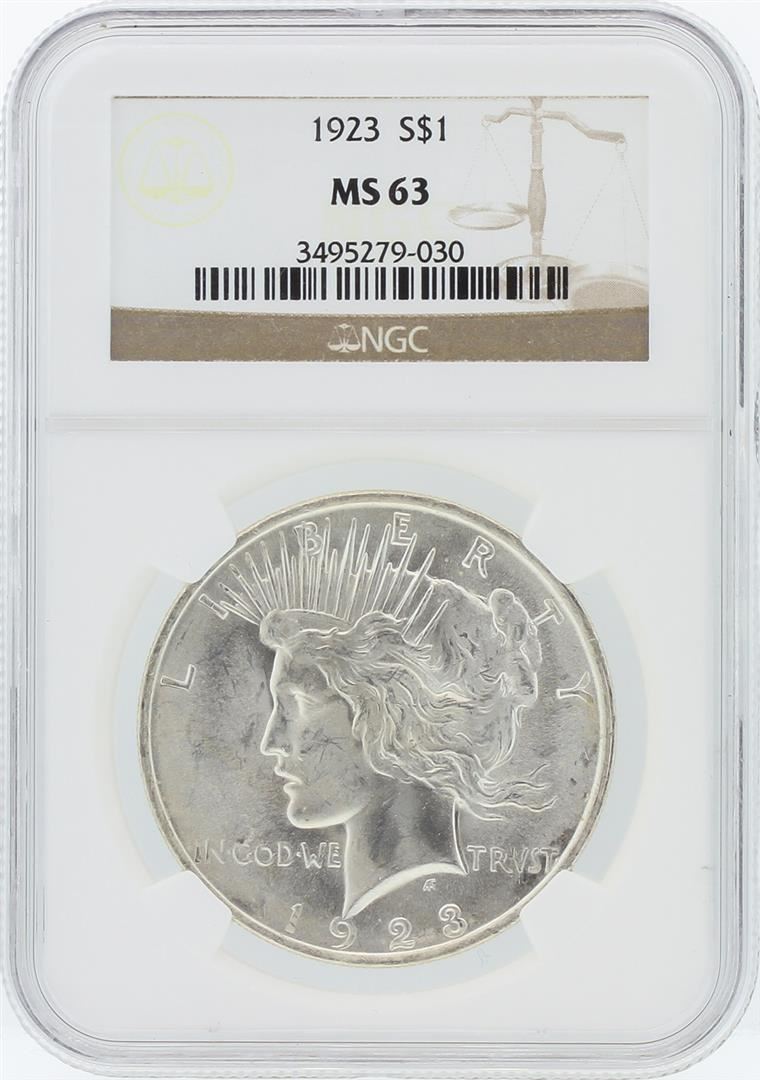 One 1923 NGC MS63 Peace Silver Dollar. NGC Certified.