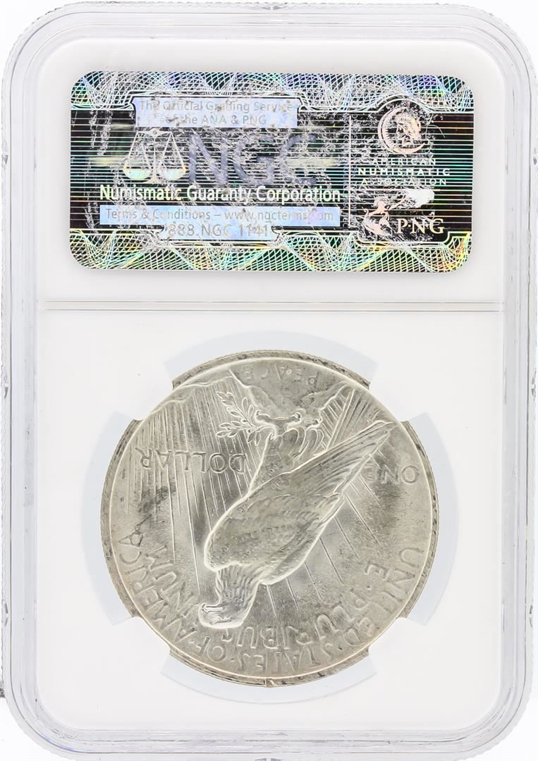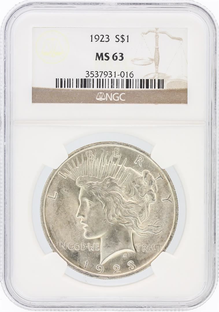One 1923 NGC MS63 Peace Silver Dollar. NGC Certified.